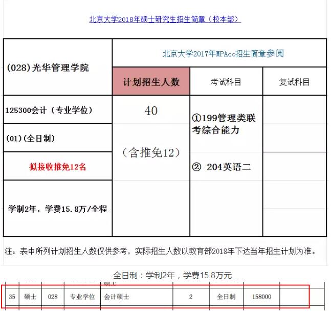 2018年全日制北大MPAcc招生簡章內容如下:北京大學光華管理學院全日制MPAcc計劃招生40人。
