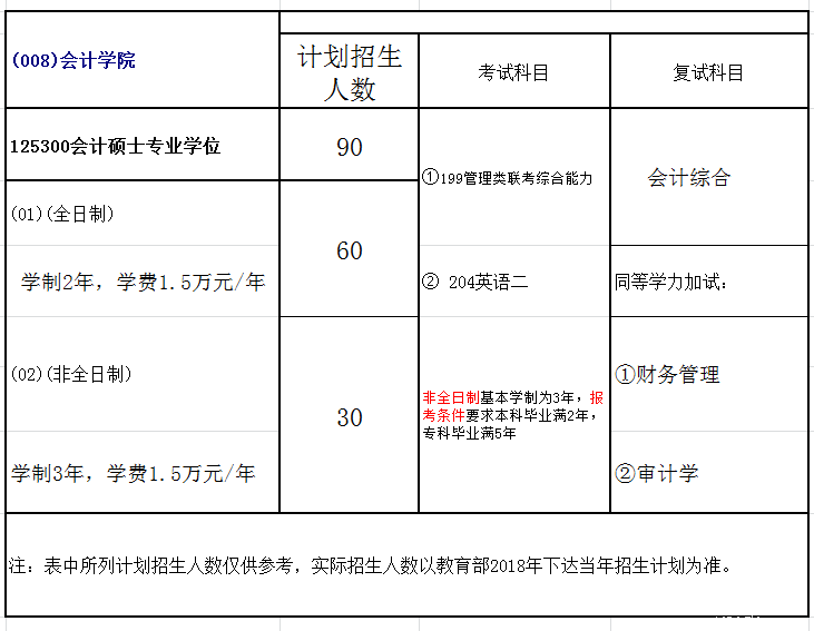 山東財經(jīng)大學2018年會計碩士(MPAcc)招生簡章