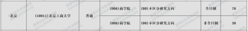 北京工商大學2021年會計專碩全日制計劃招生70人,非全日制計劃招生30人
