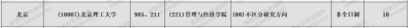 北京理工大學2021年非全日制會計專碩計劃招生10人(不含推免)。