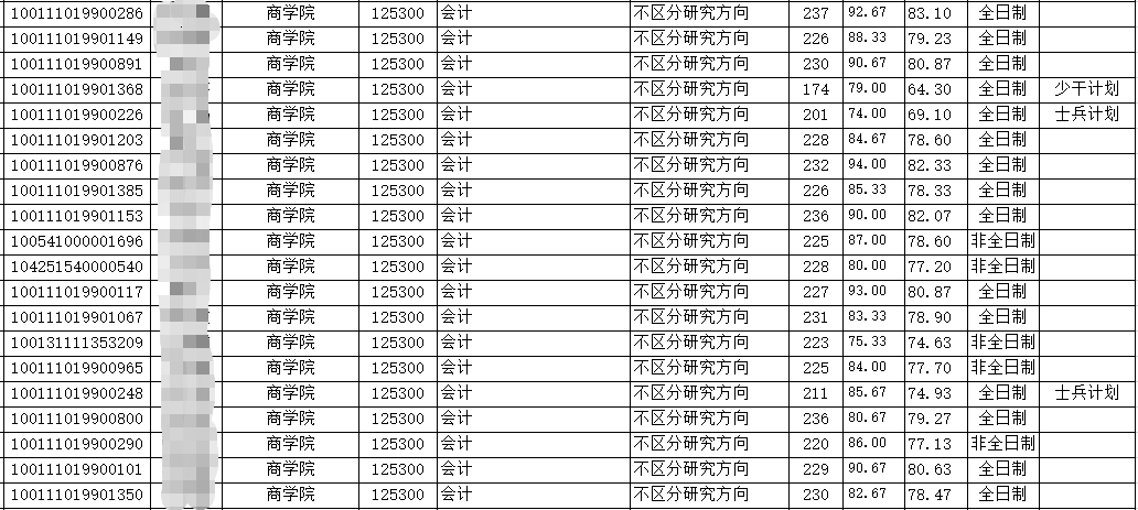 非全日制錄取最高分:235分