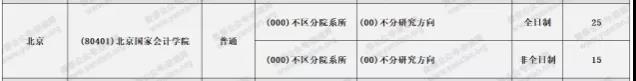 北京國家會計學院2021年會計專碩全日制計劃招生25人,非全日制計劃招生15人