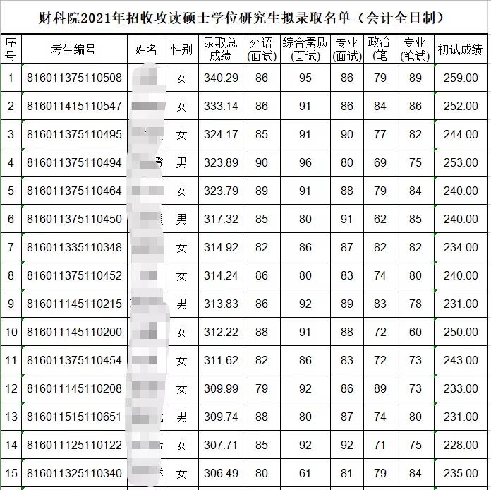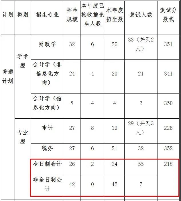 中國財政科學研究院2021年會計專碩復試分數線為218/92/46