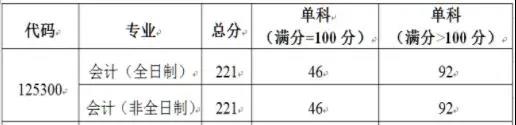 北京國家會計學院2021年會計專碩復試分數線為221/92/46