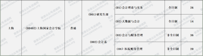上海國家會計學院2021年研究生部會計專碩全日制計劃招生40人(會計理論與實務、大數據與會計)會計系非全日制計劃招生56人(會計與財務管理、醫院財務管理)