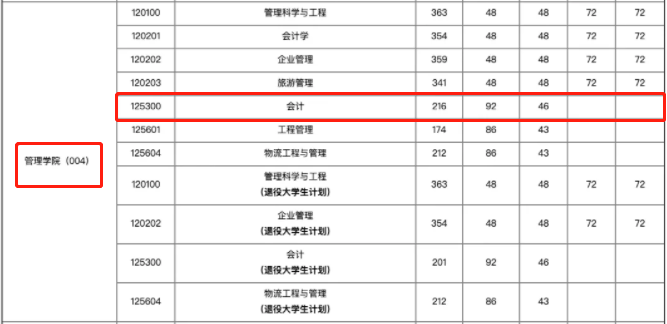 管理學院非全日制錄取最低分:216分