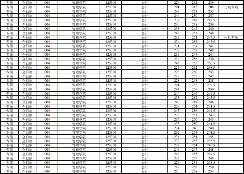管理學院全日制錄取最高分:250分