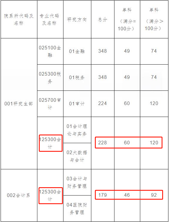 上海國家會計學院2021年研究生部會計專碩復試分數線為:228/120/60