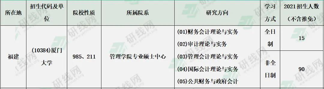 廈門大學2021年全日制會計專碩計劃招生15人非全日制會計專碩計劃招生90人。