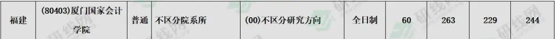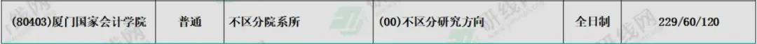 廈門國家會計學院2021年全日制會計專碩復試分數線為:229/120/60