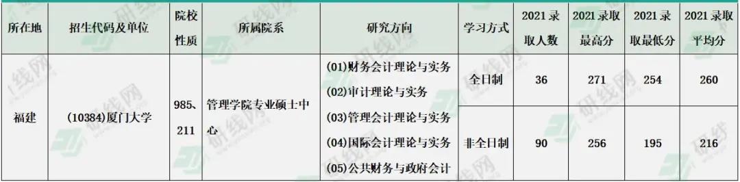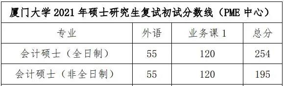 廈門大學2021年全日制會計專碩復試分數線:254/120/552021年非全日制會計專碩復試分數線:195/120/55