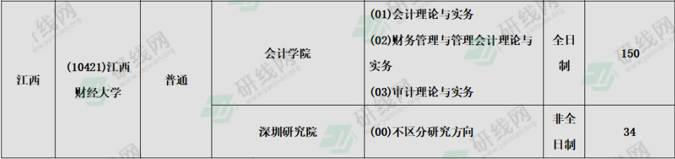 江西財經大學2021年全日制會計專碩計劃招生150人非全日制會計專碩計劃招生34人。