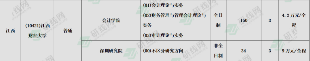 江西財經大學2021年全日制會計專碩學制學費:學制為3年,學費為4.2萬元/全程,非全日制會計專碩學制學費:學制為:3年,學費為:9萬元/全程