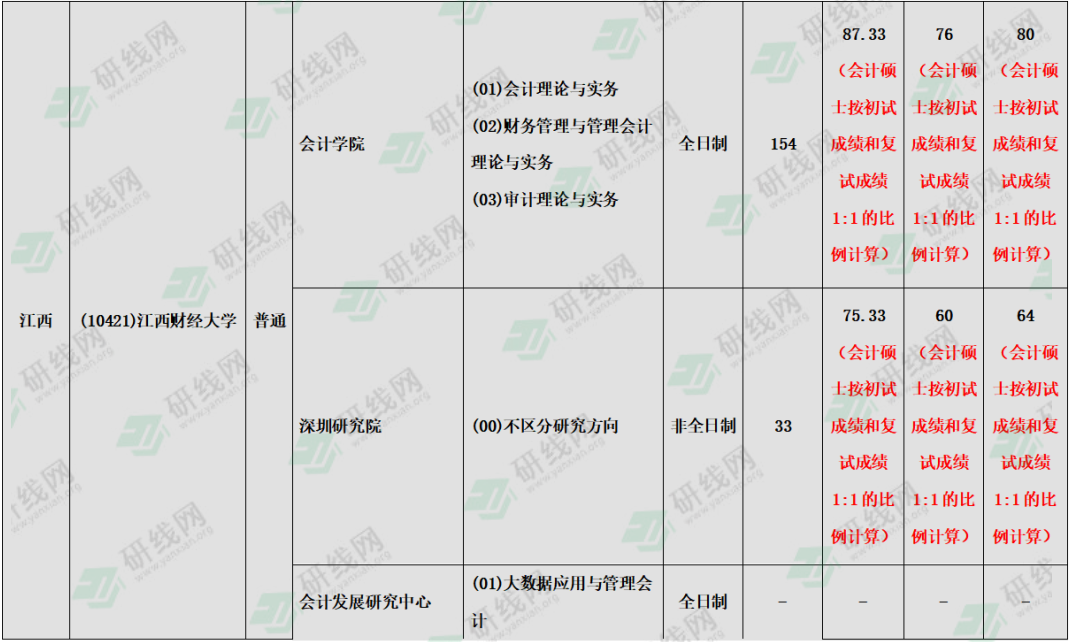 江西財經大學2021年會計學院全日制會計專碩擬錄取人數為154人,深圳研究院非全日制會計專碩擬錄取人數為33人