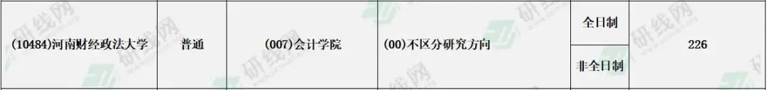 河南財經政法大學2021年會計專碩復試分數線為226;非全日制會計專碩復試分數線為179/92/46