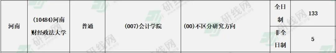 河南財經政法大學2021年會計專碩全日制計劃招生133人非全日制計劃招生5人