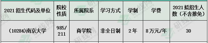 南京大學2021年審計碩士專業非全日制擬錄取人數為30人。