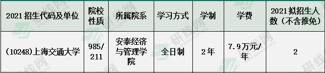 上海交通大學2021年審計碩士專業全日制擬錄取人數為2人。