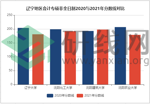 | 遼寧地區會計專碩非全日制2020與2021年分數線對比 | ||
