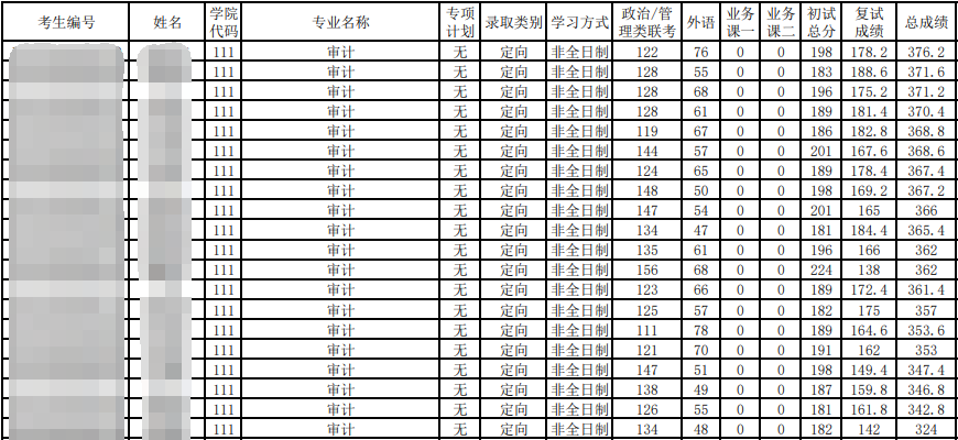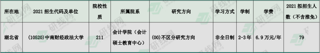 中南財經政法大學2021年審計碩士專業非全日制擬錄取人數為40人。