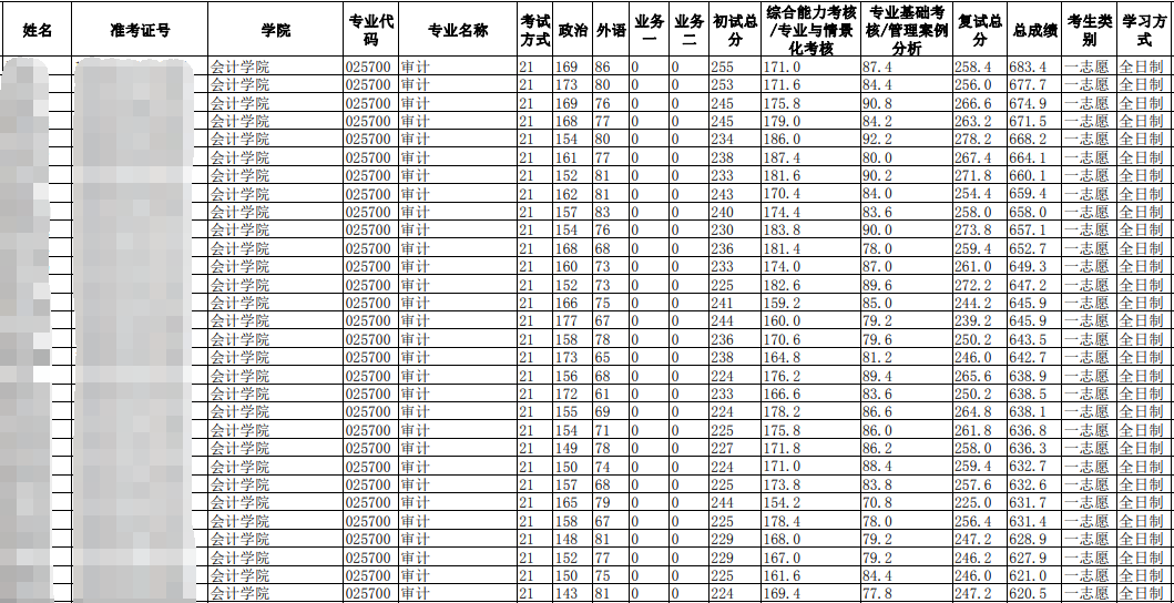 2021年審計碩士專業計劃招生全日制27人以上人數不含推免生。
