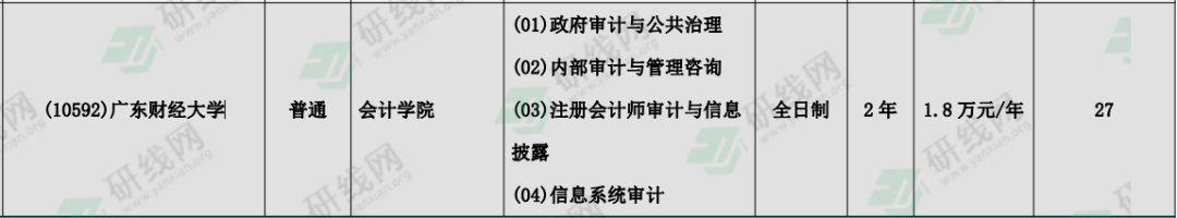 廣東財經大學2021年審計碩士專業全日制擬錄取人數為30人。