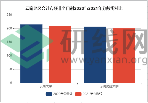 | 云南地區會計專碩非全日制2020與2021年分數線對比 | ||