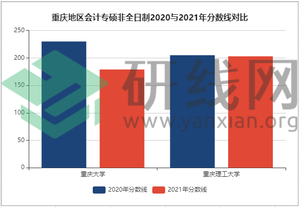 | 重慶地區會計專碩非全日制2020與2021年分數線對比 | ||