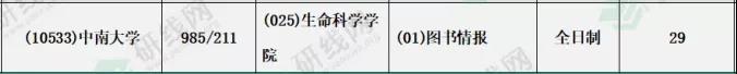 中南大學2021年圖書情報碩士專業全日制擬錄取人數為29人。