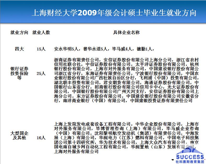 3、會計師事務所: 很多考會計學的研究生都選擇了會計師事務所,一般而言,事務所能讓考生學到在企業10年甚至20年也學不到的東西。如果你對專業知識掌握得已經很熟練,并且又感覺能適應經常出差加班的工作,可以選擇事務所。但是要有吃苦的心理準備,事務所的工作強度是很大的,不過有一份付出就有一份收獲,報酬也是很可觀的。