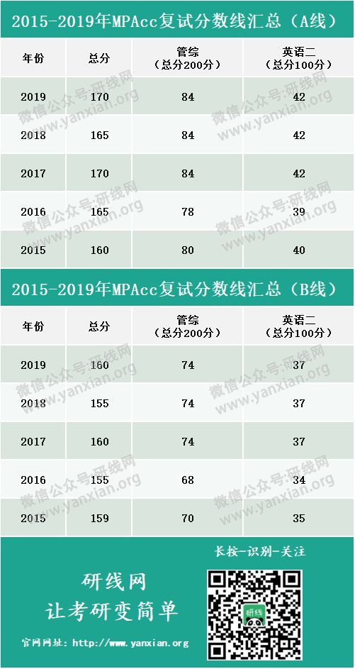 研線網(wǎng)整理2019年-2015年MPAcc考研國家線