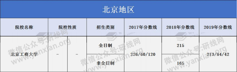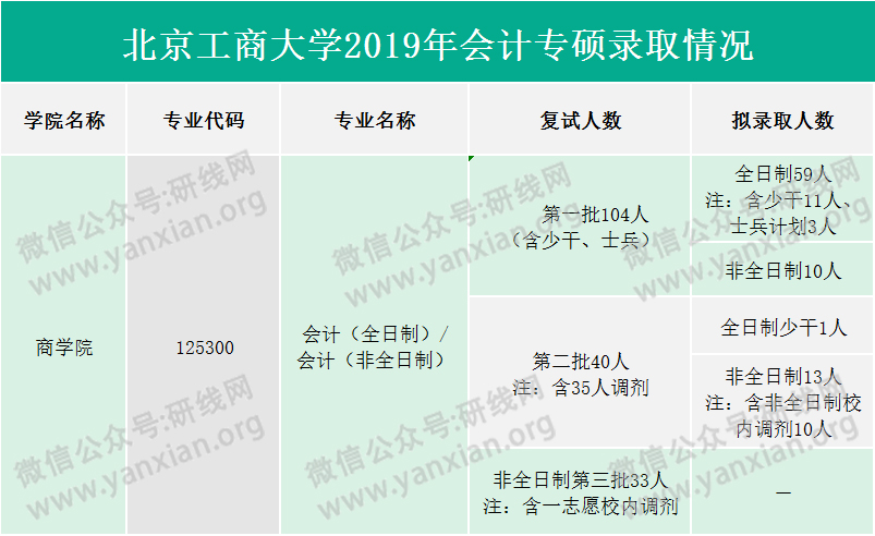 雖然2020年的復試分數線和報錄比還未定,但是研線網整理了2019年對北京工商大學會計專碩的復試分數線和報錄比,供大家參考。