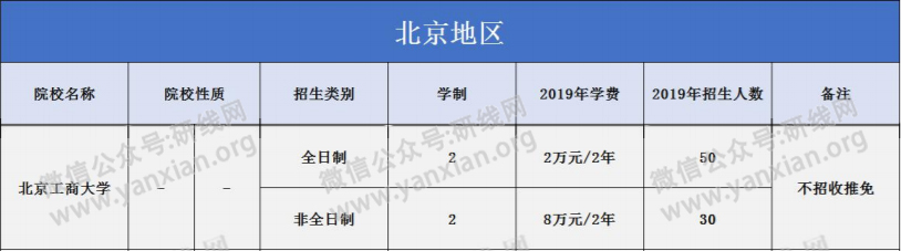 研線網《藍皮書》整理北京工商大學2019年學制學費情況