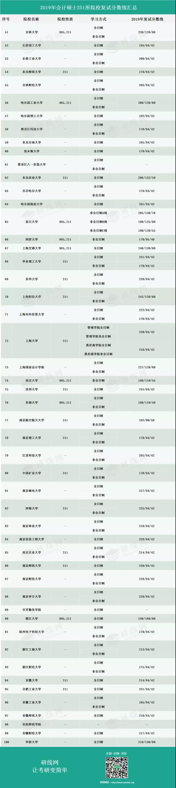 2019年會計專碩(MPAcc)251所院校復試分數線匯總
