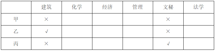 第二步:根據條件(3),可知丙公司不招聘建筑,在相應地方打叉;