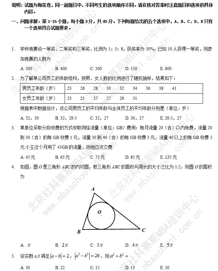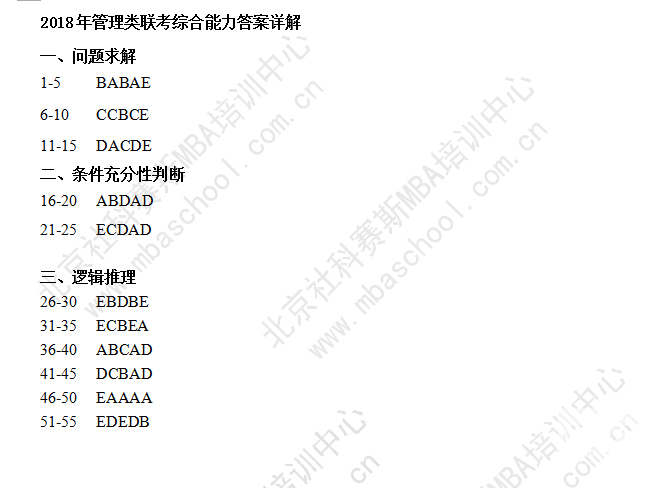 2018年全國碩士研究生管理類聯考綜合試題答案解析
