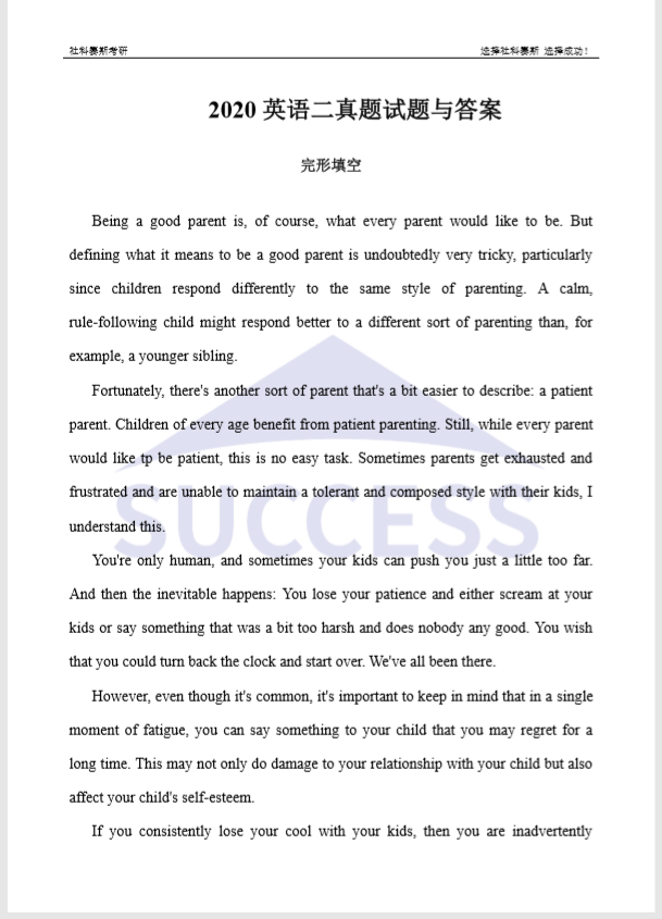 以上就是“2020年全國碩士研究生考試考研英語(二)真題及解析”的全部內容!祝大家抱得錦鯉,考研成功!
