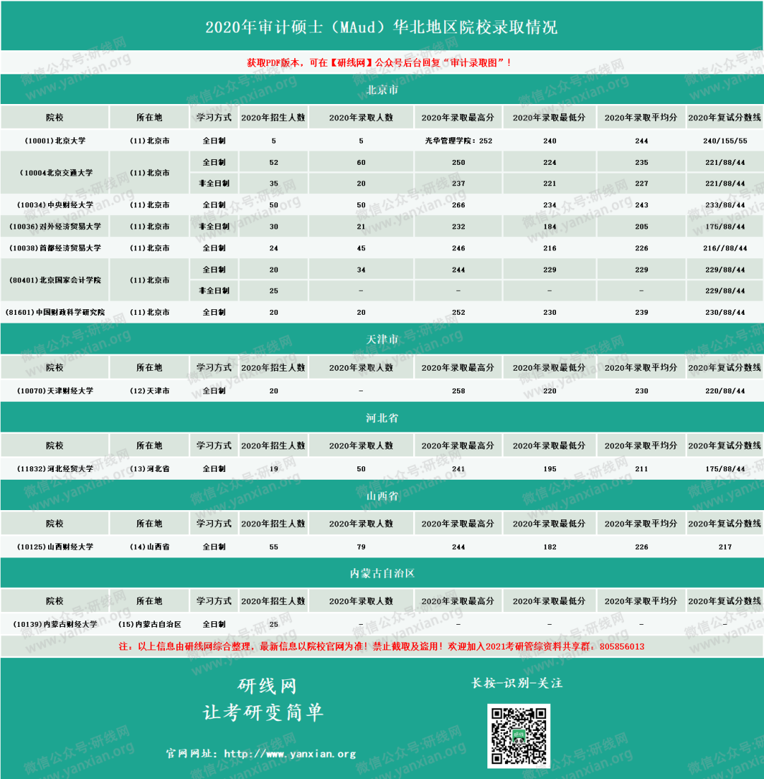 2021MAud擇校:【華北地區】審計碩士2020年院校錄取情況