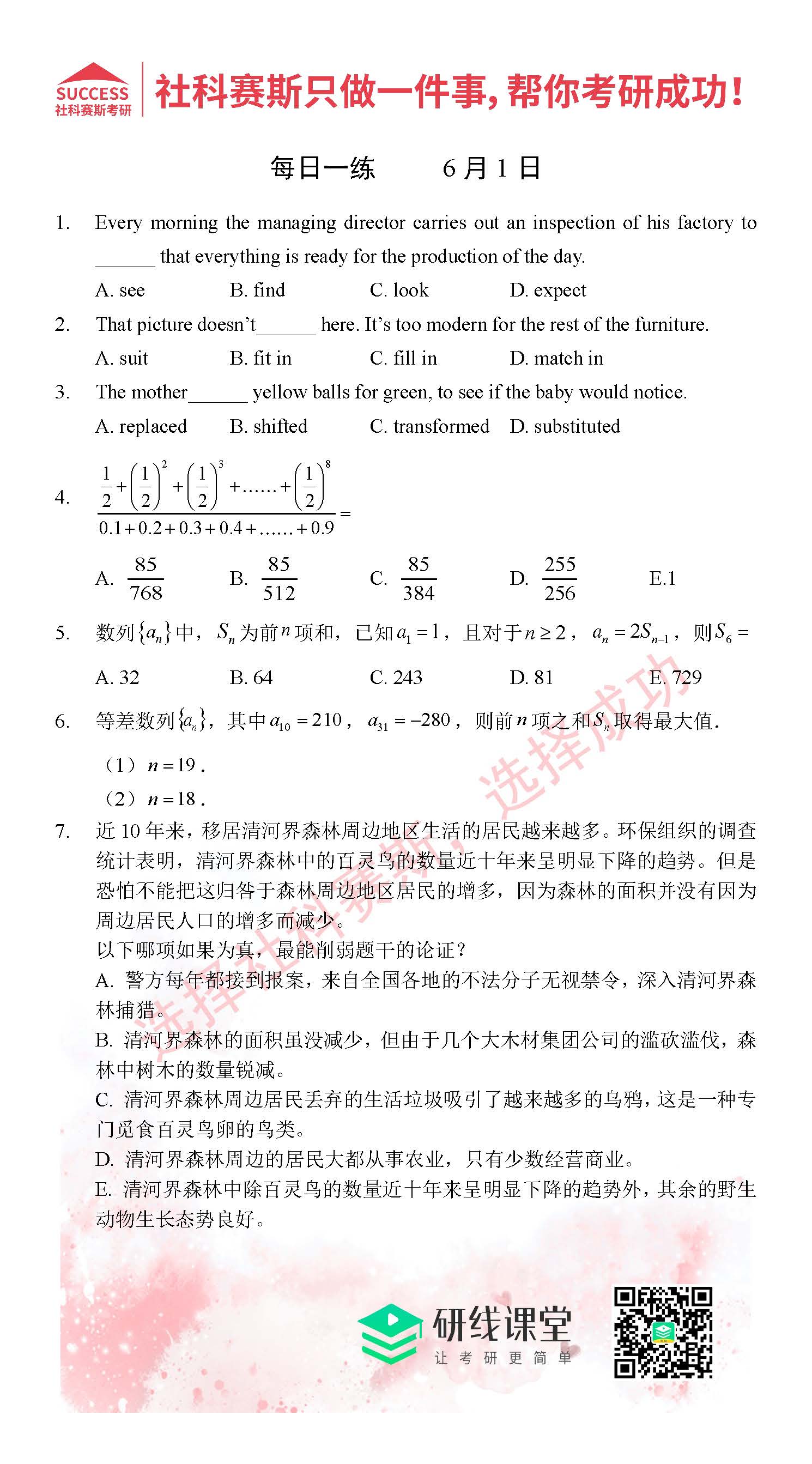 以上就是MPAcc備考網小編整理“2021MPAcc每日習題:管理類聯考6月1日精選習題分享(附答案)”的全部內容,希望下一個研究生就是你!