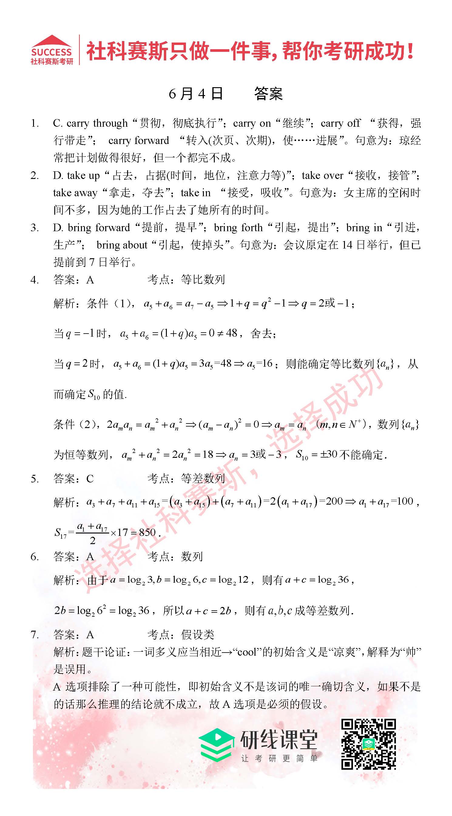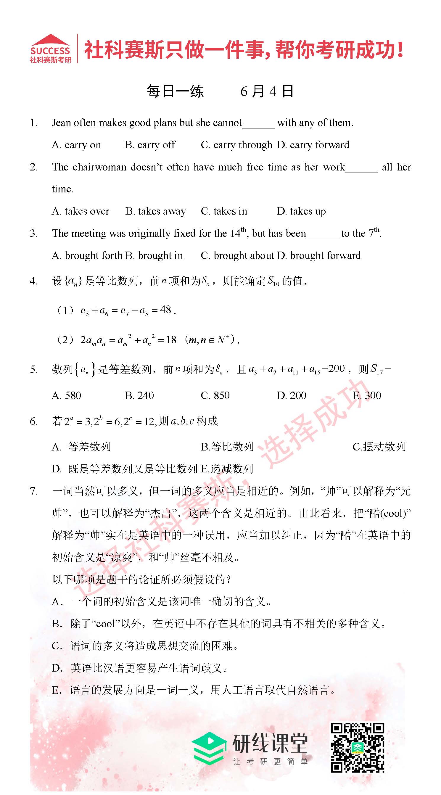 以上就是MPAcc備考網小編整理“2021MPAcc每日習題:管理類聯考6月4日精選習題分享(附答案)”的全部內容,希望下一個研究生就是你!