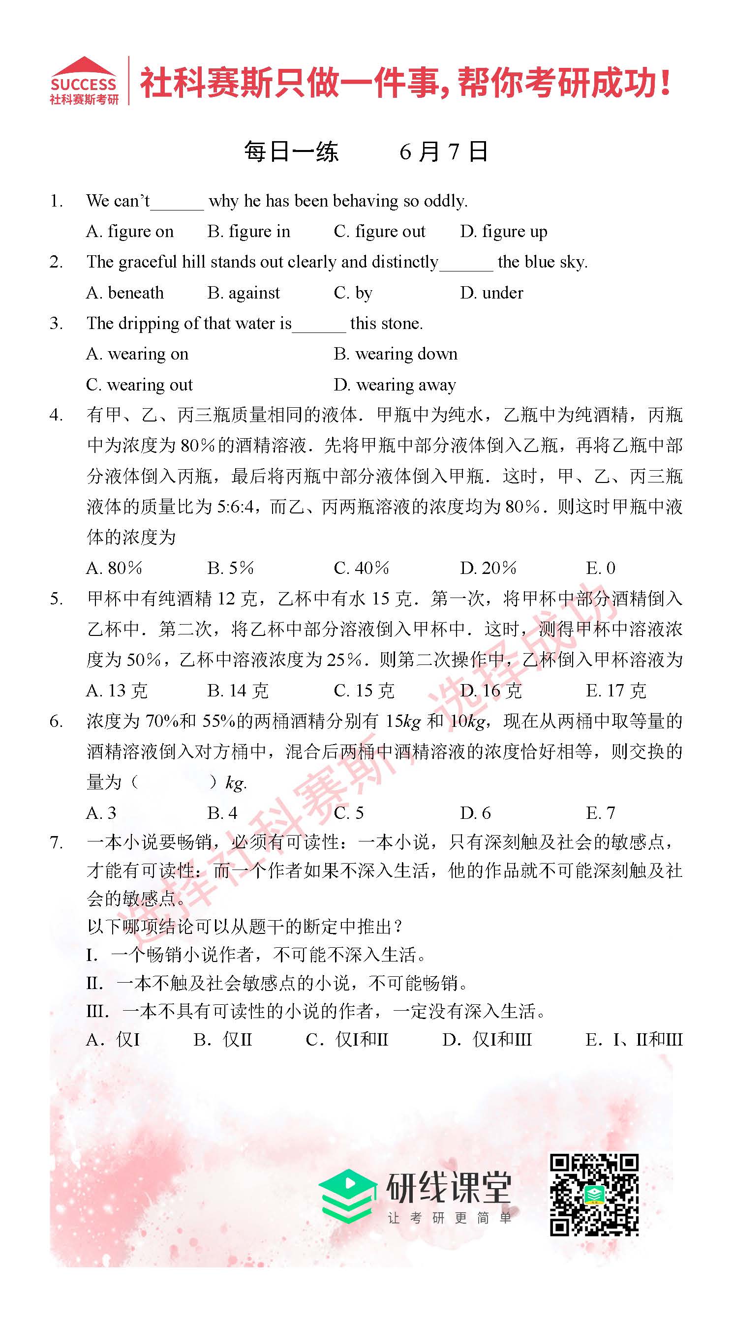 以上就是MPAcc備考網小編整理“2021MPAcc每日習題:管理類聯考6月7日精選習題分享(附答案)”的全部內容,希望下一個研究生就是你!