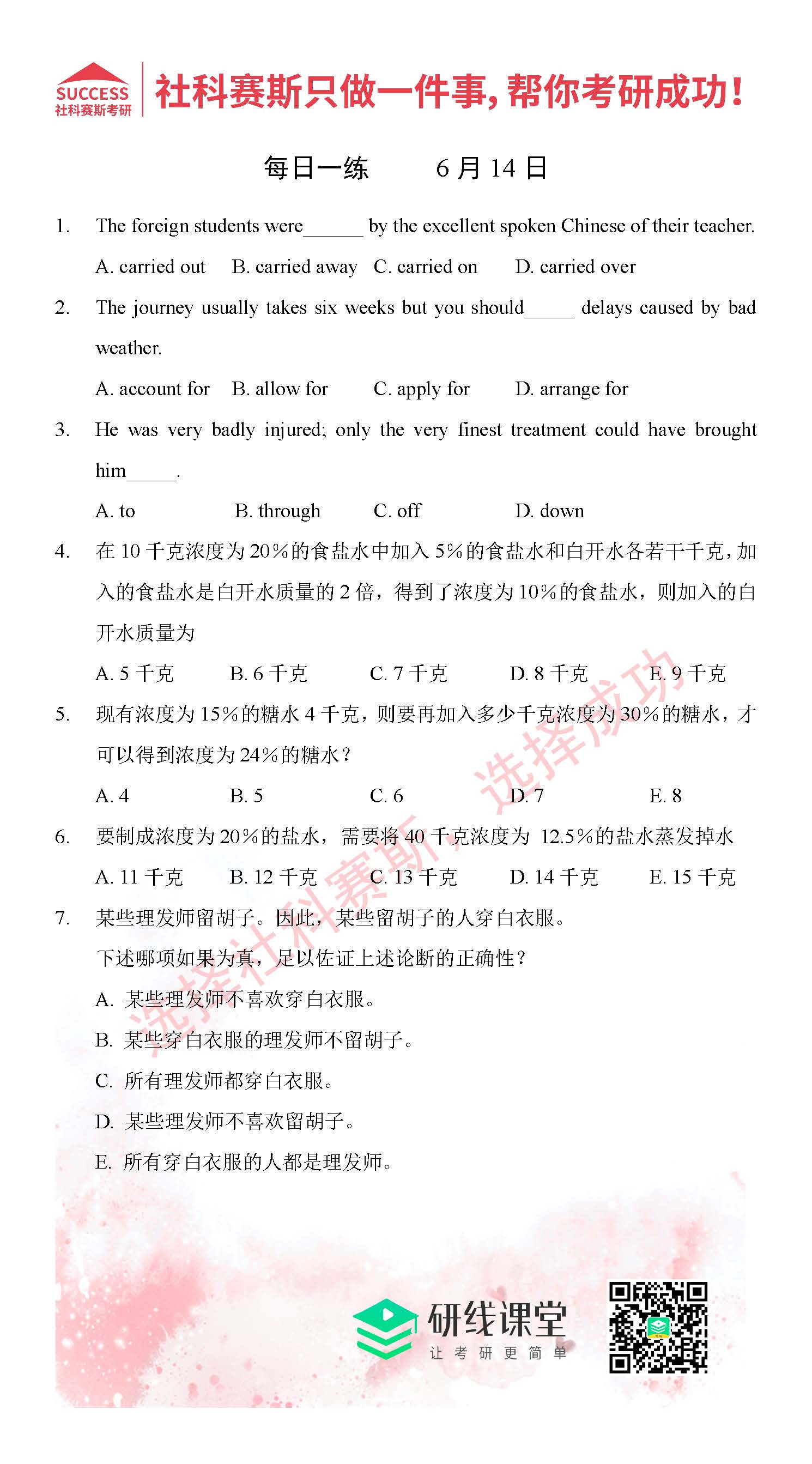 2021MPAcc每日習(xí)題:管理類聯(lián)考6月14日精選習(xí)題分享(附答案)