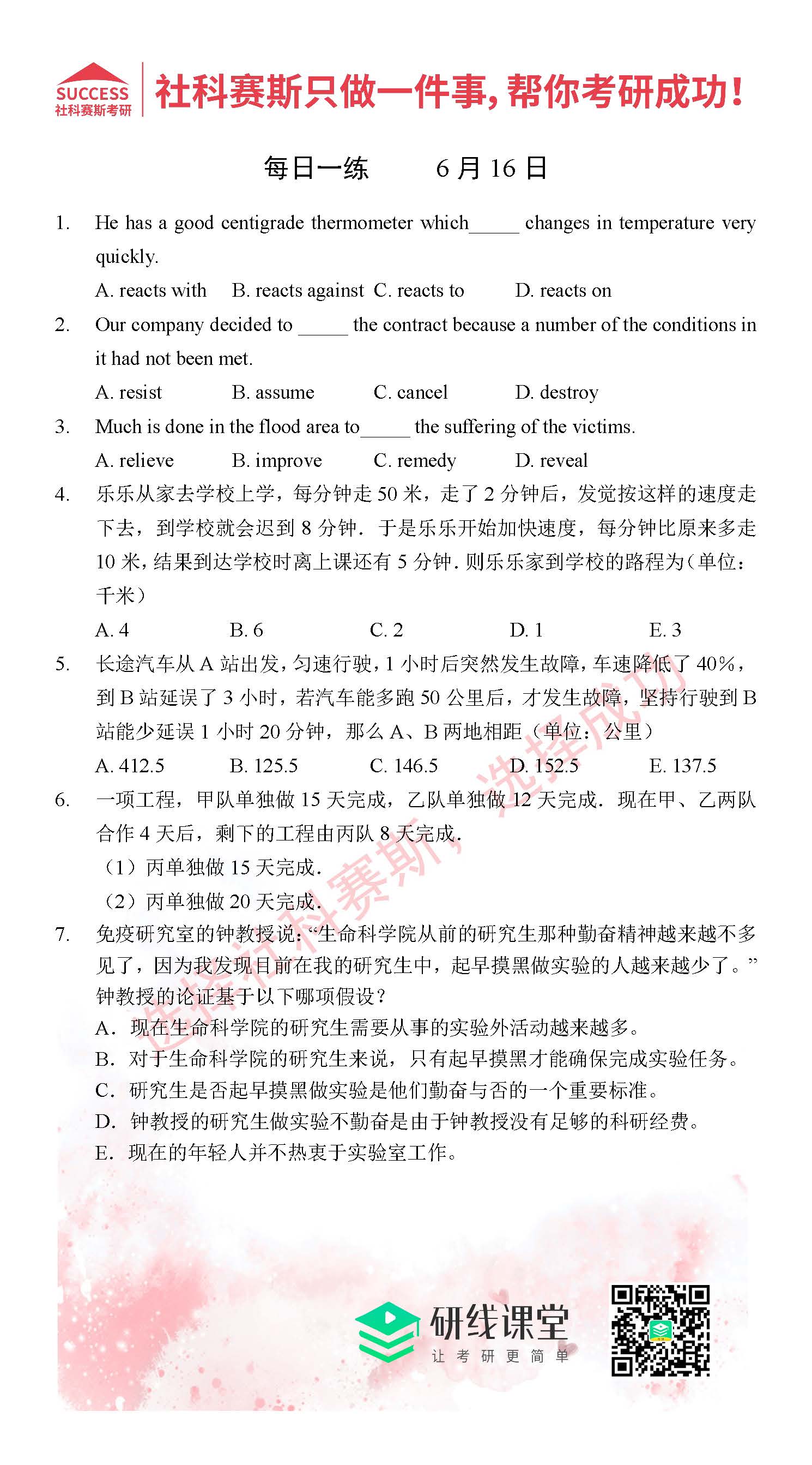 以上就是MPAcc備考網小編整理“2021MPAcc每日習題:管理類聯考6月16日精選習題分享(附答案)”的全部內容,希望下一個研究生就是你!