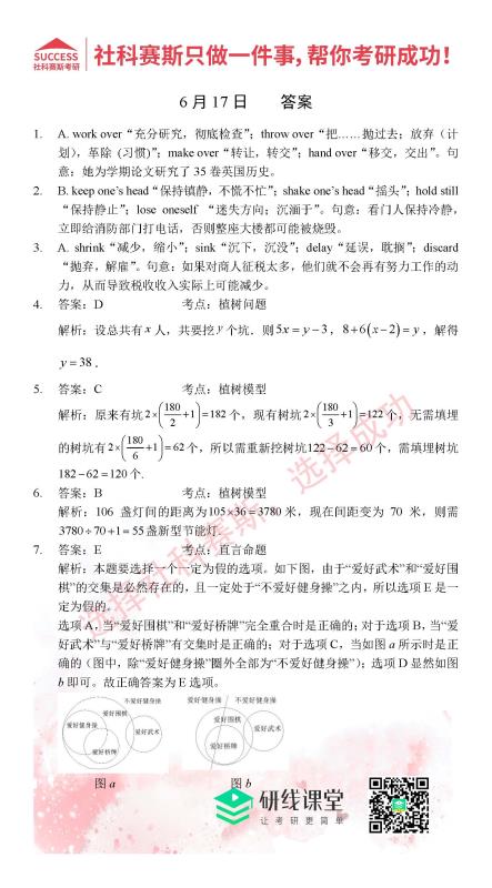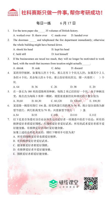 以上就是MPAcc備考網小編整理“2021MPAcc每日習題:管理類聯考6月17日精選習題分享(附答案)”的全部內容,希望下一個研究生就是你!