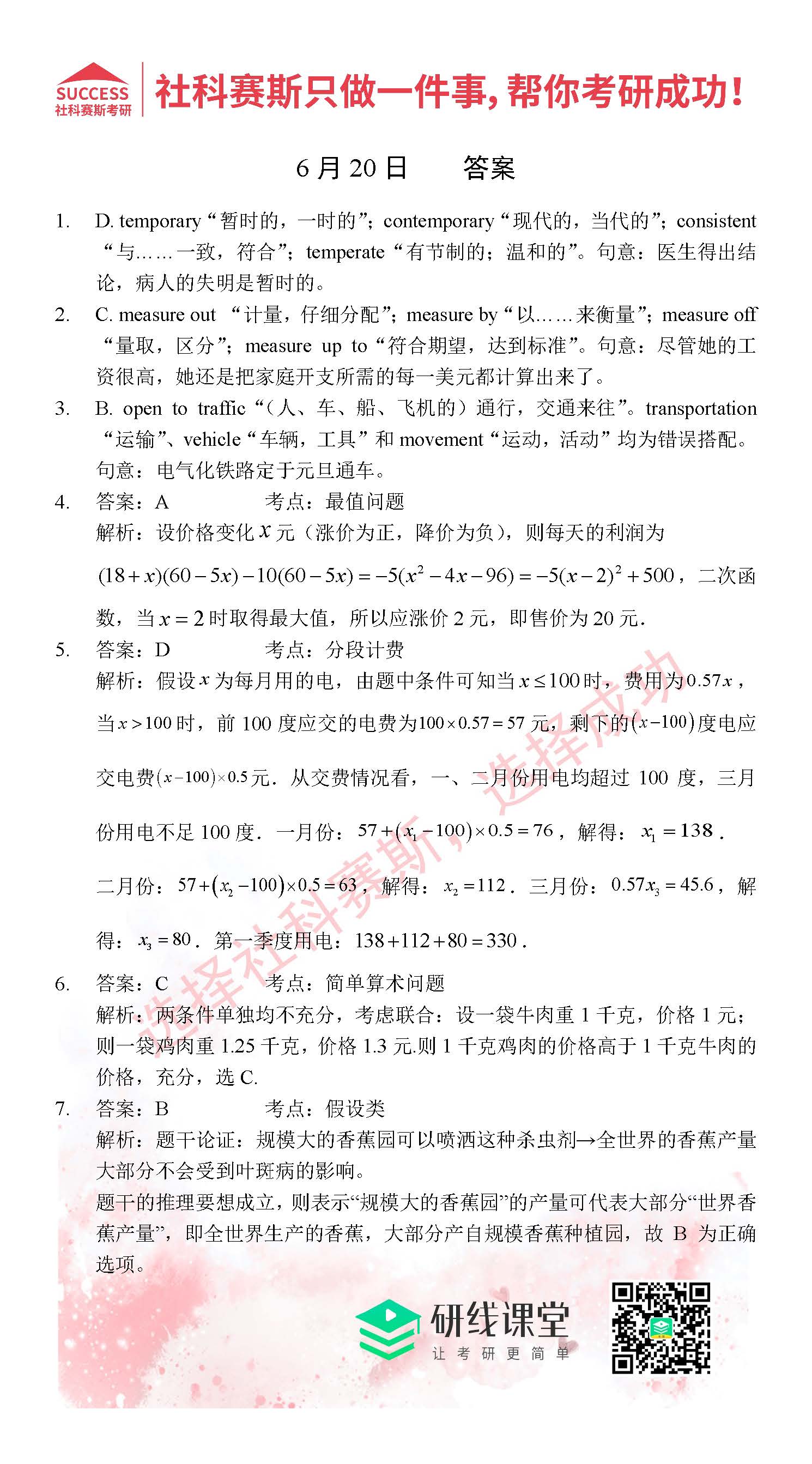 以上就是MPAcc備考網小編整理“2021MPAcc每日習題:管理類聯考6月20日精選習題分享(附答案)”的全部內容,希望下一個研究生就是你!