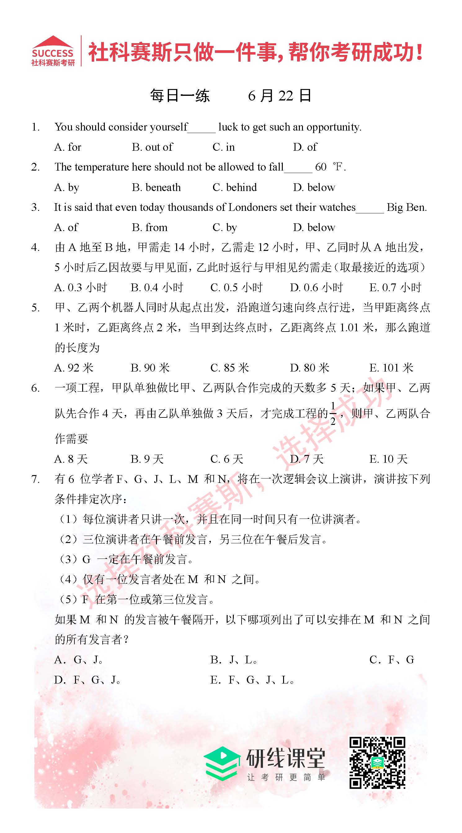 2021MPAcc每日習題:管理類聯考6月22日精選習題分享(附答案)