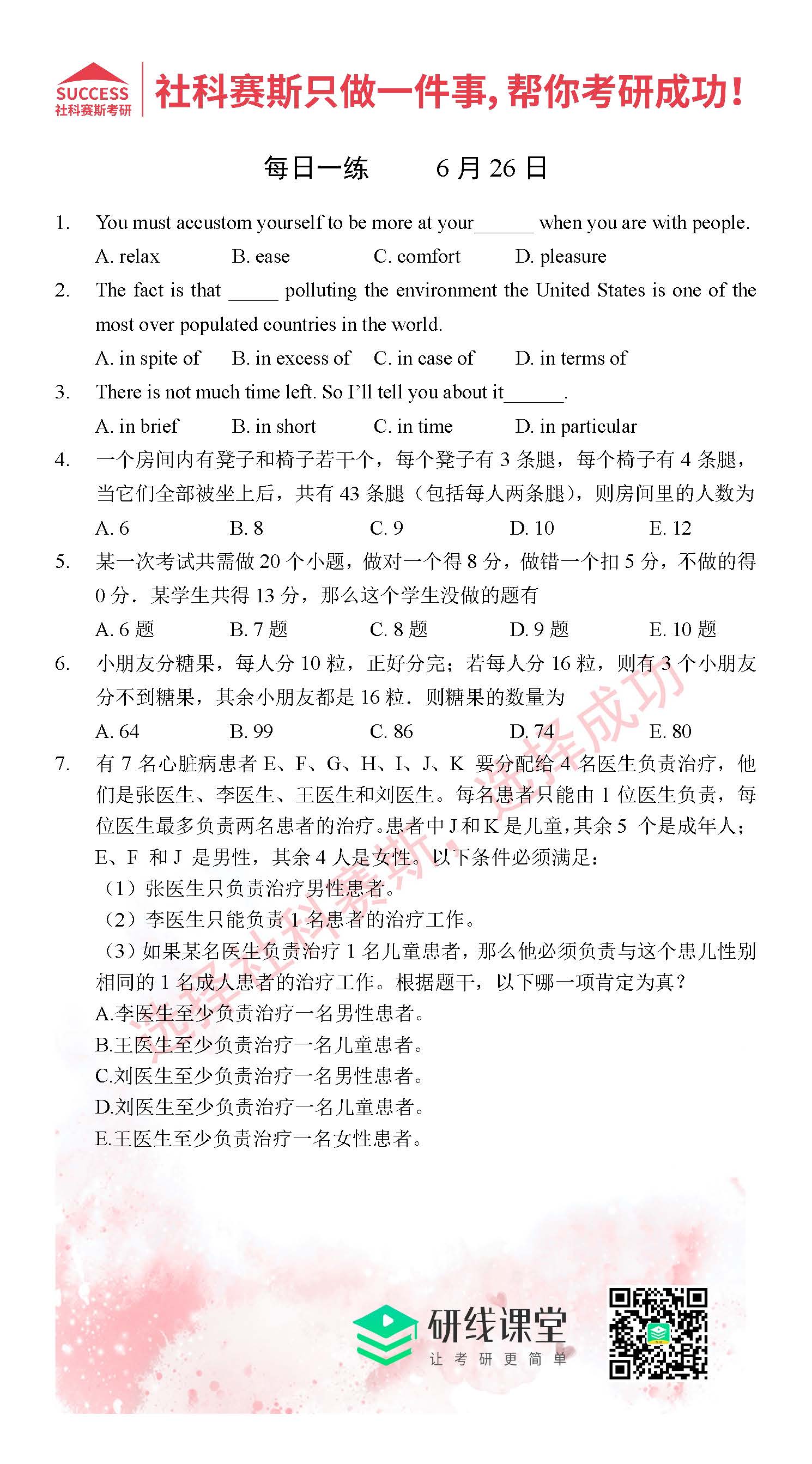 2021MPAcc每日習題:管理類聯(lián)考6月26日精選習題分享(附答案)