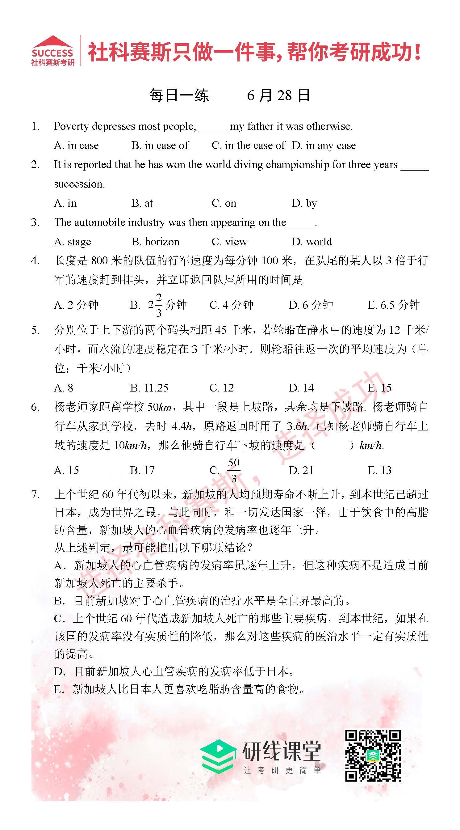 2021MPAcc每日習題:管理類聯考6月28日精選習題分享(附答案)