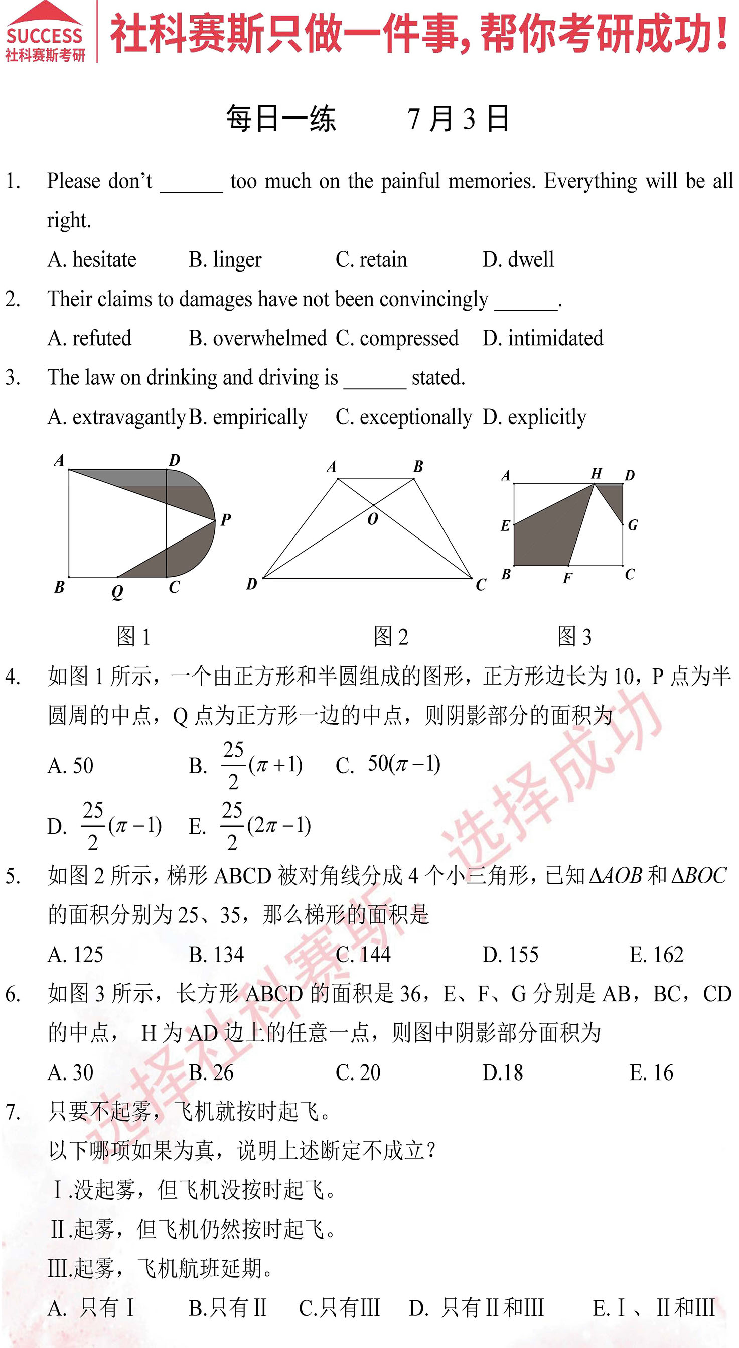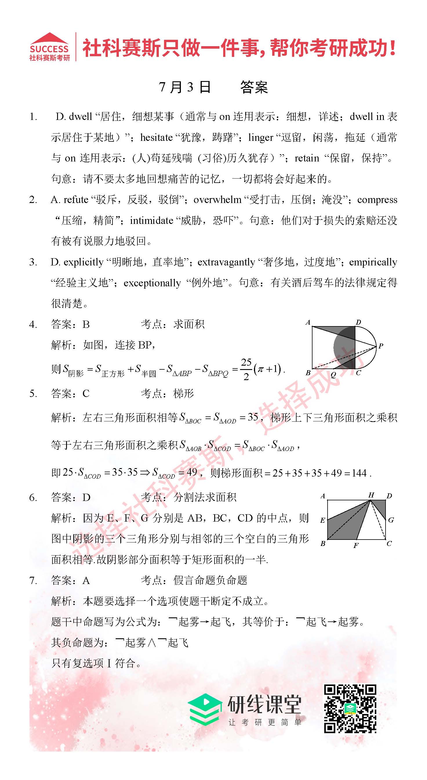 以上就是社科賽斯MPAcc網小編整理“2021MPAcc每日習題:管理類聯考7月3日精選習題分享(附答案)”的全部內容,希望下一個研究生就是你!
