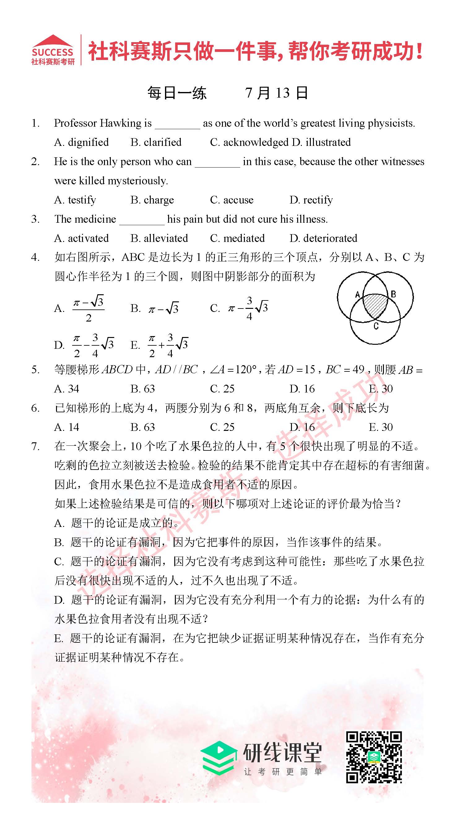 以上就是社科賽斯MPAcc網小編整理“2021MPAcc每日習題:管理類聯考7月13日精選習題分享(附答案)”的全部內容,希望下一個研究生就是你!